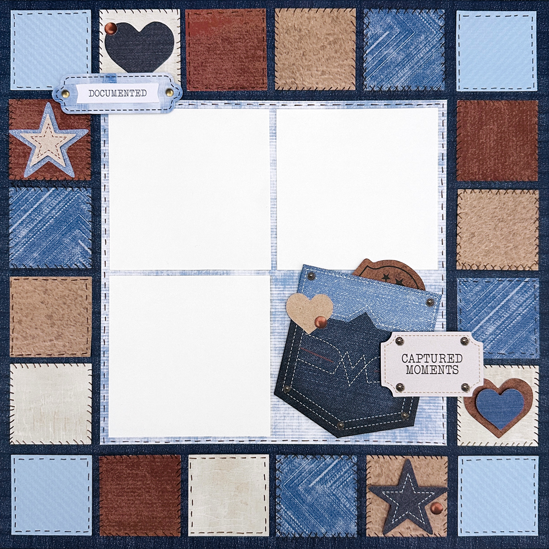 Noreen’s Tip: “Repositionable adhesive and the Square Punch are must-have tools when doing a layout like this — the Repo adhesive is great for when you don’t line things up right the first time and the Square Punch saved me time creating all 20 squares! I was happy to spend the time I saved drawing all the faux stitching marks with my Brown Dual-Tip Pen.”