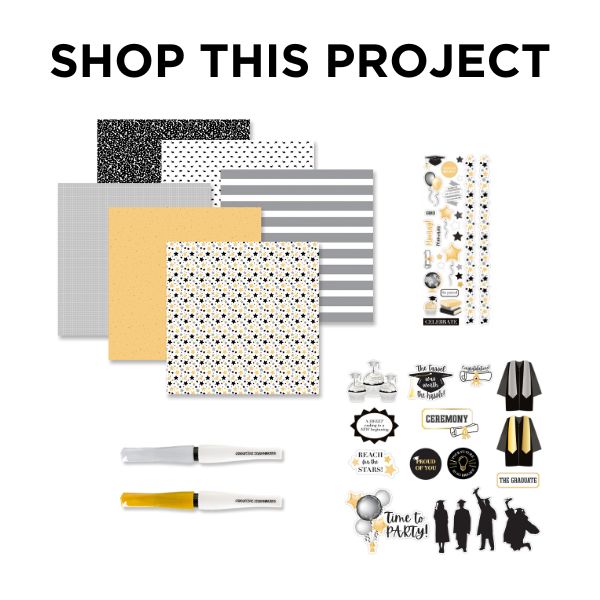 It’s May and graduation ceremonies are coming up in full force! Remember everything from the last day of school to the parties to the ceremony itself with this graduation-themed layout. Using the Gemstone Custom Cutting System Patterns, Micro-Tip Scissors and Shimmer Brush Pens, you can create the perfect balloon bouquets for the occasion.
