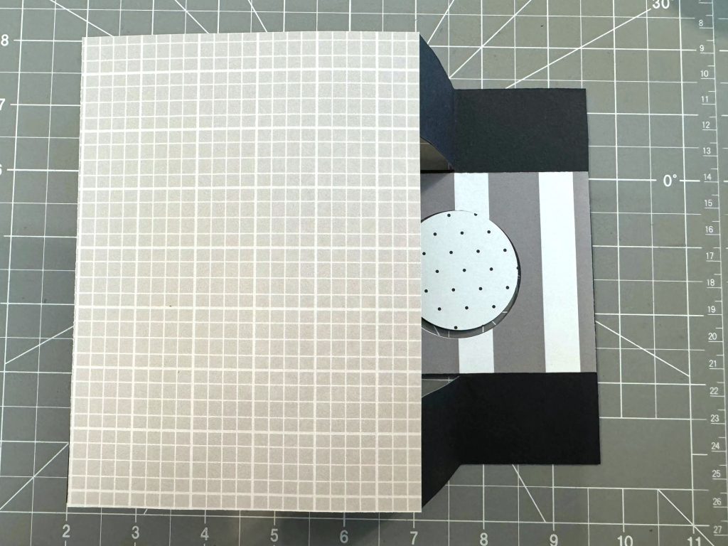 Step 7: Accordion fold the card as shown above. Use the Bone Folder to make the crease. Add a 4? x 5-1/2? patterned piece of paper to the back of the card as shown.