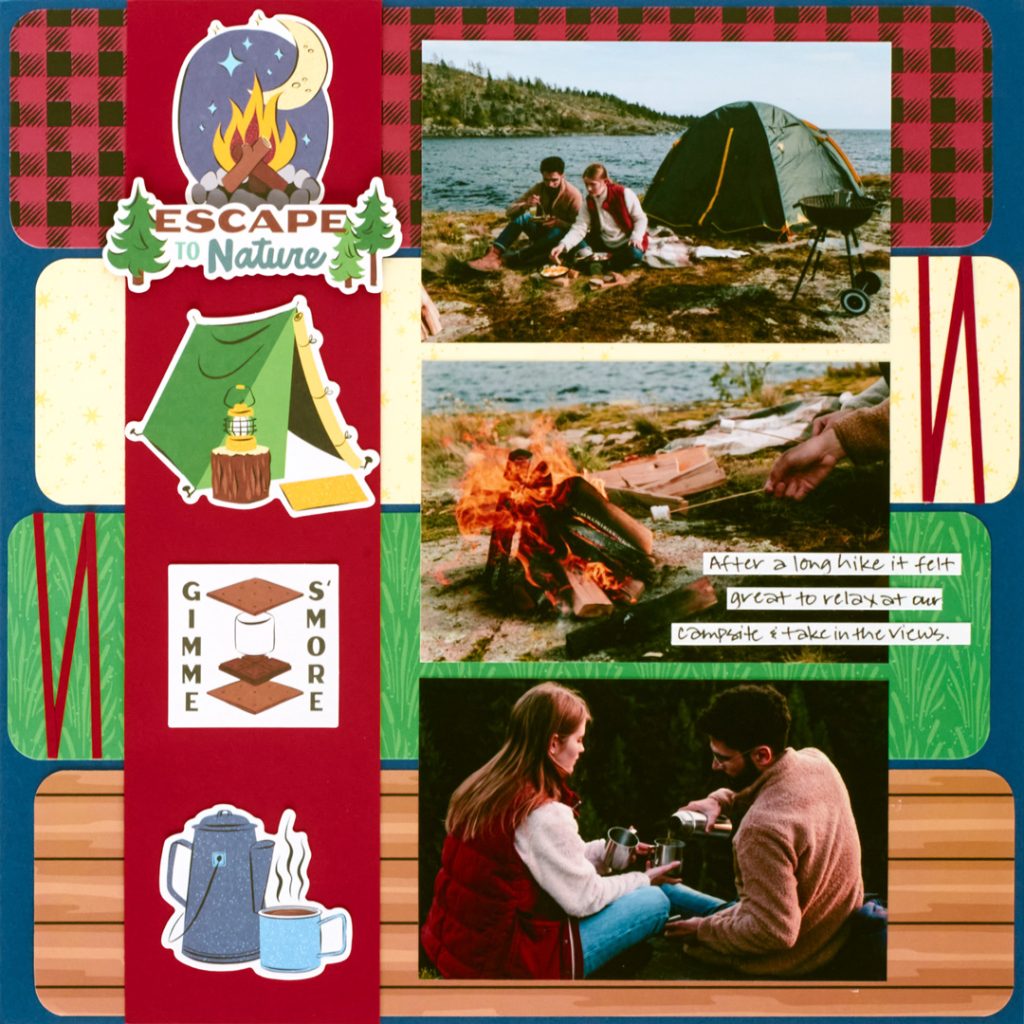 Close to completing an album? We’re pitching the lake life scrapbook layout below to you to try out!