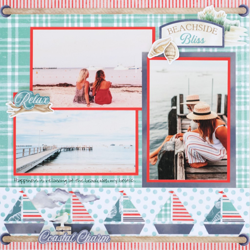 Get ready to set sail and scrapbook! This seaside layout features sailboats created with the Coastal Shore Paper Pack. While you can follow the guide, it’s easily customizable so you can make any style of boat you like! Keep reading to see how you can make your own seaworthy spread.