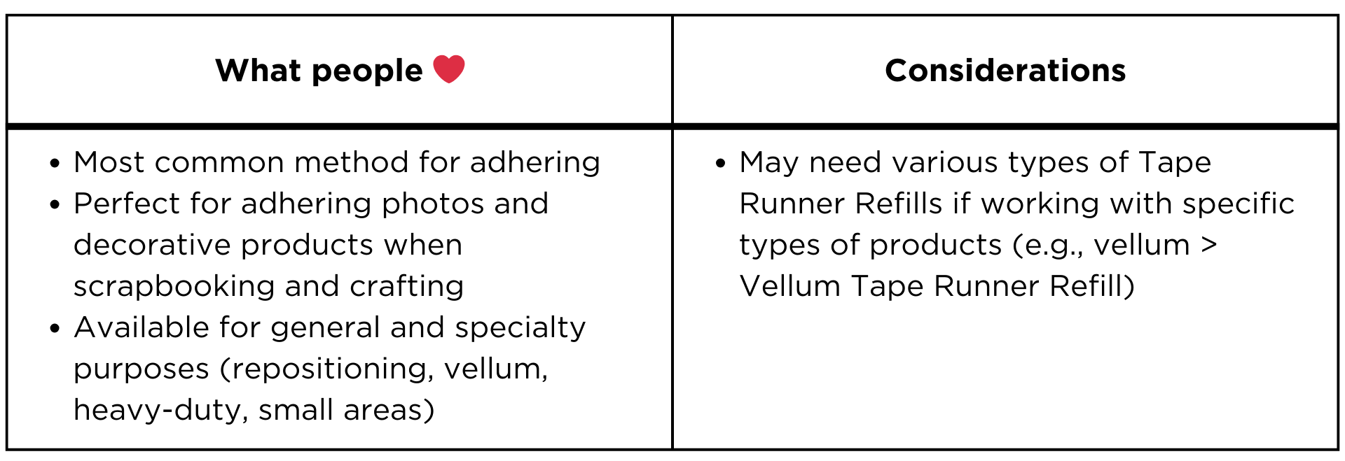 Considerations: Creative Memories Tape Runners are versatile tools for scrapbooking and crafting. However, they may not be ideal for projects requiring extensive adhesive coverage. If you need a more robust adhesive solution or are working with weighty materials, consider using a larger adhesive like our double-sided tapes.