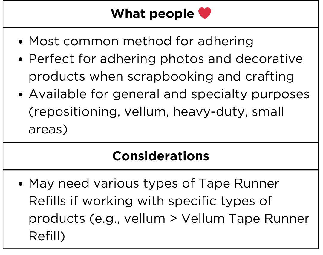Our Tape Runners have a 5-star rating and are the best on the market, complete with the photo-safe promise you know and love. Plus, each was designed to meet YOUR needs!
