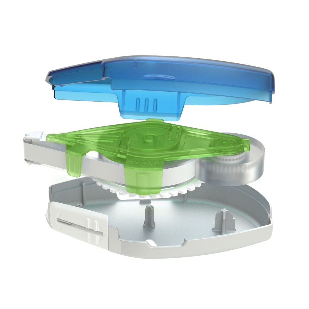 • Press the Release Tab: Gently press the release on the outer shell to unlock the adhesive compartment.