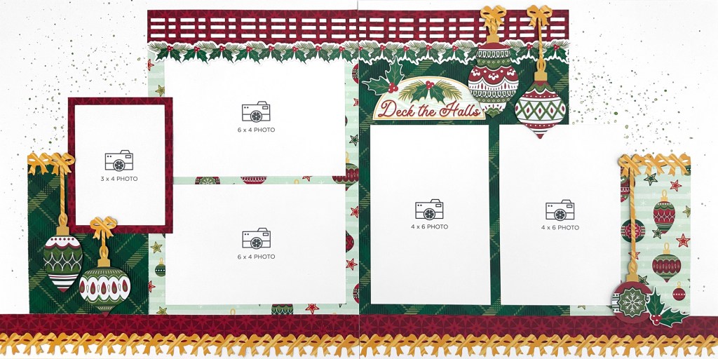 Noreen’s Tip: “Use the Green Shimmer Brush Pen from the Christmas Charm Buy-it-All Bundle to add splashes and splatters of color to white base pages and embellishments! And try cutting out individual bows from the Ribbons & Bows punched borders to use as hangers for the stunning ornament die cuts!”