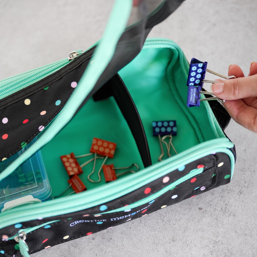 This compact yet spacious case features a large interior pocket with a removable divider — perfect for storing small tools, embellishments or Tape Runner refills. The exterior zipper pocket is ideal for quick-access items. Plus, its durable construction and vibrant design make it the perfect companion for any crafter.