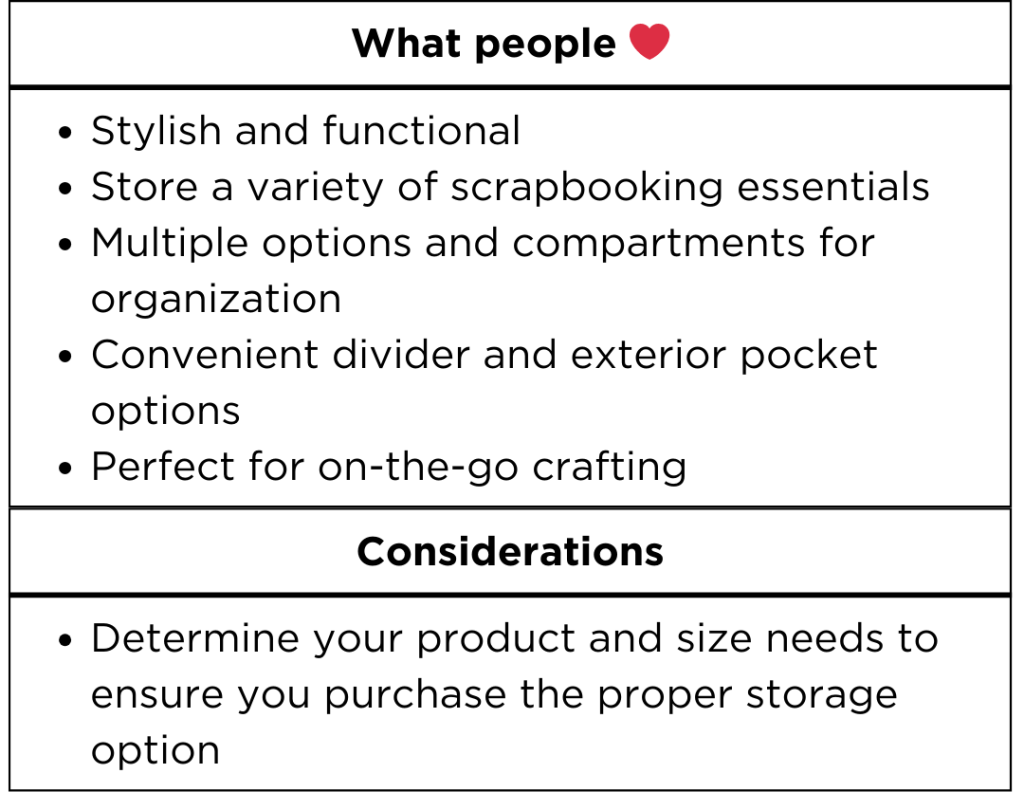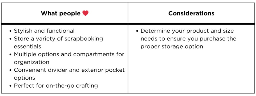 Considerations: While Creative Memories offers a plethora of tool storage solutions to fit various needs, it’s important to consider the amount of crafting supplies you own. Be realistic about how much storage you need to ensure you choose the right option to keep your crafting supplies organized at home or on the go.
