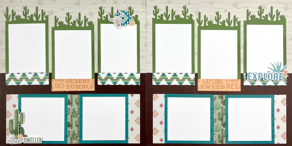 Melissa’s Tip: “Border punches are such a great tool — and they’re perfect for this sketch! I used the new punch from the Desert Scenes collection, but you can use any edge-style punch you like. Just punch along both the top and bottom of your cardstock, then cut it into 3.5″ panels and trim them to 5.5″ tall, starting at the top edge of the design. Line them up and stagger them slightly for a fun layered effect. You can rotate this layout to suit your papers or photos, and every version feels fresh and different.”