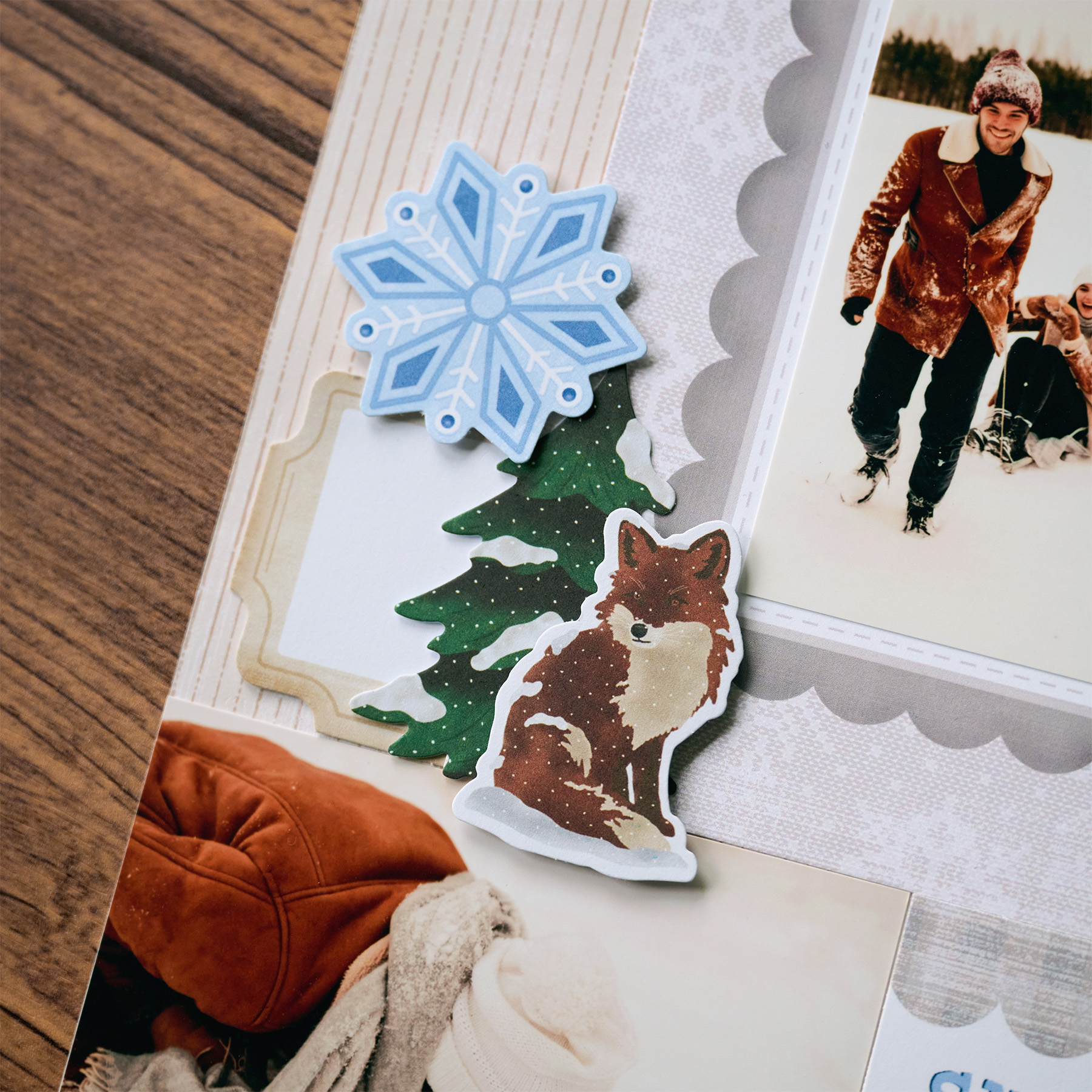 Snow-dusted days are perfect for cozy crafting, and this layout is an easy way to bring winter adventures to life. The Winter Bliss collection adds subtle charm to every detail, from mats that frame your photos to small touches like whimsical animals and snowy accents. It all comes together with a simple, wintry warmth that makes capturing these chilly moments feel effortless. Bundle up your memories and let this layout add a frosty touch to your snow-day stories.