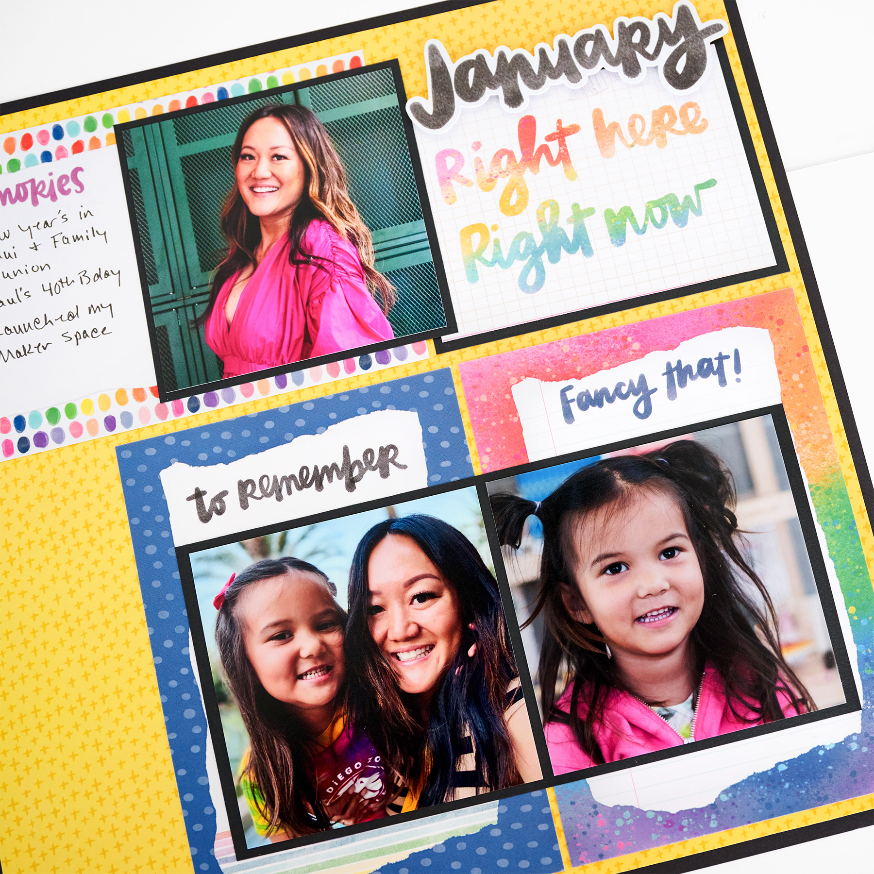 It doesn’t take much to make your favorite memories stand out. Try using bright fun colors to highlight the moments you love most and create a layout that truly shines!