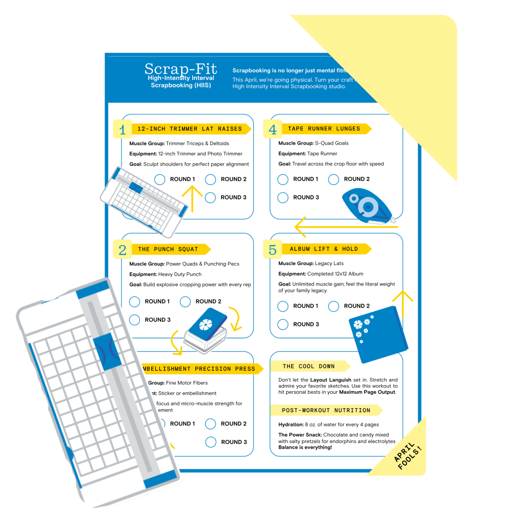 Turn your craft room into a training ground! Download our official Scrap-Fit Workout Flyer to follow along and track your reps as you go.