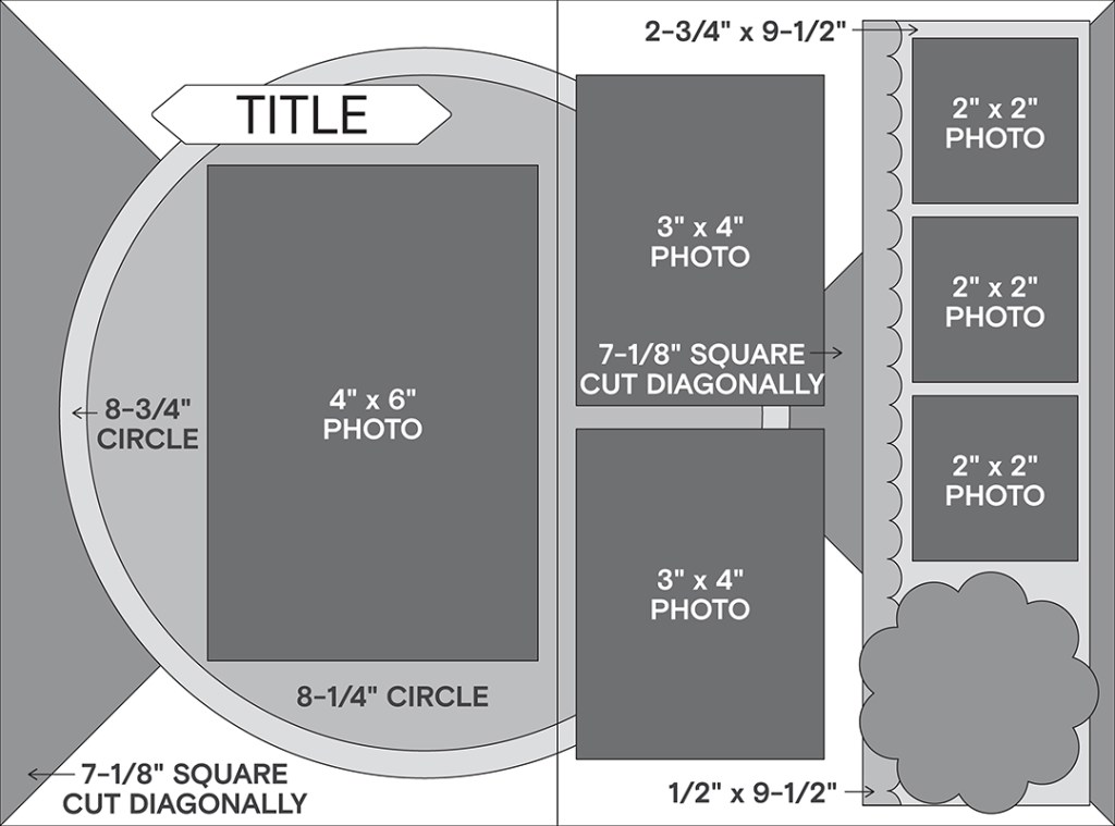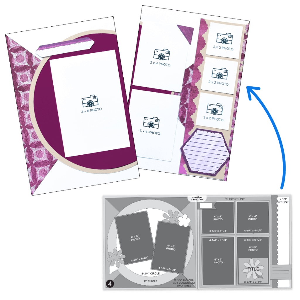 As more scrapbookers fall in love with Creative Memories’ Scrap Journal, adapting 12″ x 12″ Virtual Crop sketches to fit 6.75″ x 10″ pages becomes a fun creative challenge! The most important thing to keep in mind is that every element is simply on a smaller scale, but you are not limited to sticking to the sketch exactly!